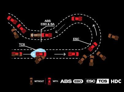 Electronic Stability Control (ESC), Traction Control System (TCS), Hill Descent Control (HDC)